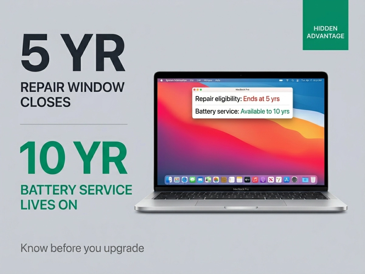 Apple's vintage designation limits repair access after five years from discontinuation, with full service ending at seven. Mac laptops get a hidden advantage: battery replacements remain available for ten years. Understanding these windows changes how you should time upgrades versus repairs for maximum value.