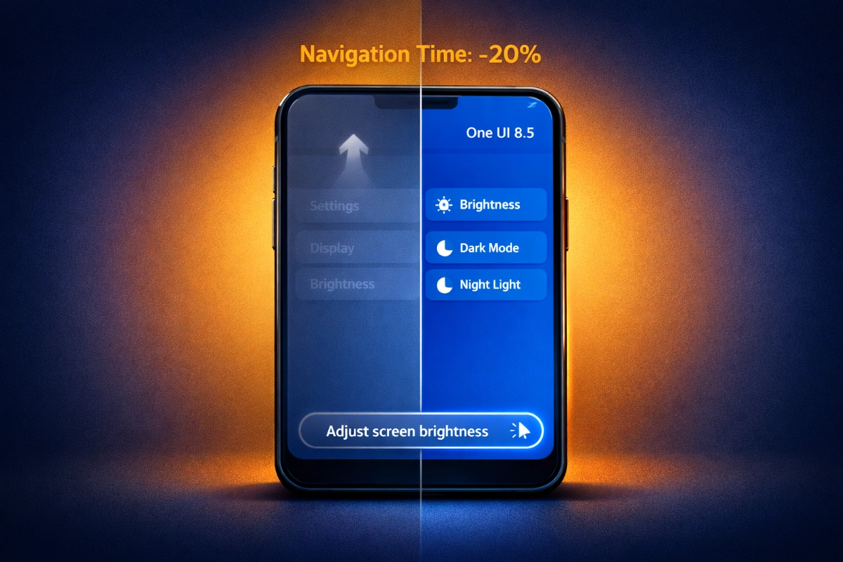 Samsung's One UI 8.5 moves search bars to the bottom of your screen and teaches Galaxy AI to understand natural language queries like "my eyes hurt" instead of forcing you to remember exact menu names. According to Samsung's official announcement in December 2025, internal testing shows these changes reduce navigation time by approximately 20% for common tasks. The update launches with the Galaxy S26 series in early 2026, then rolls out to existing devices throughout Q2.